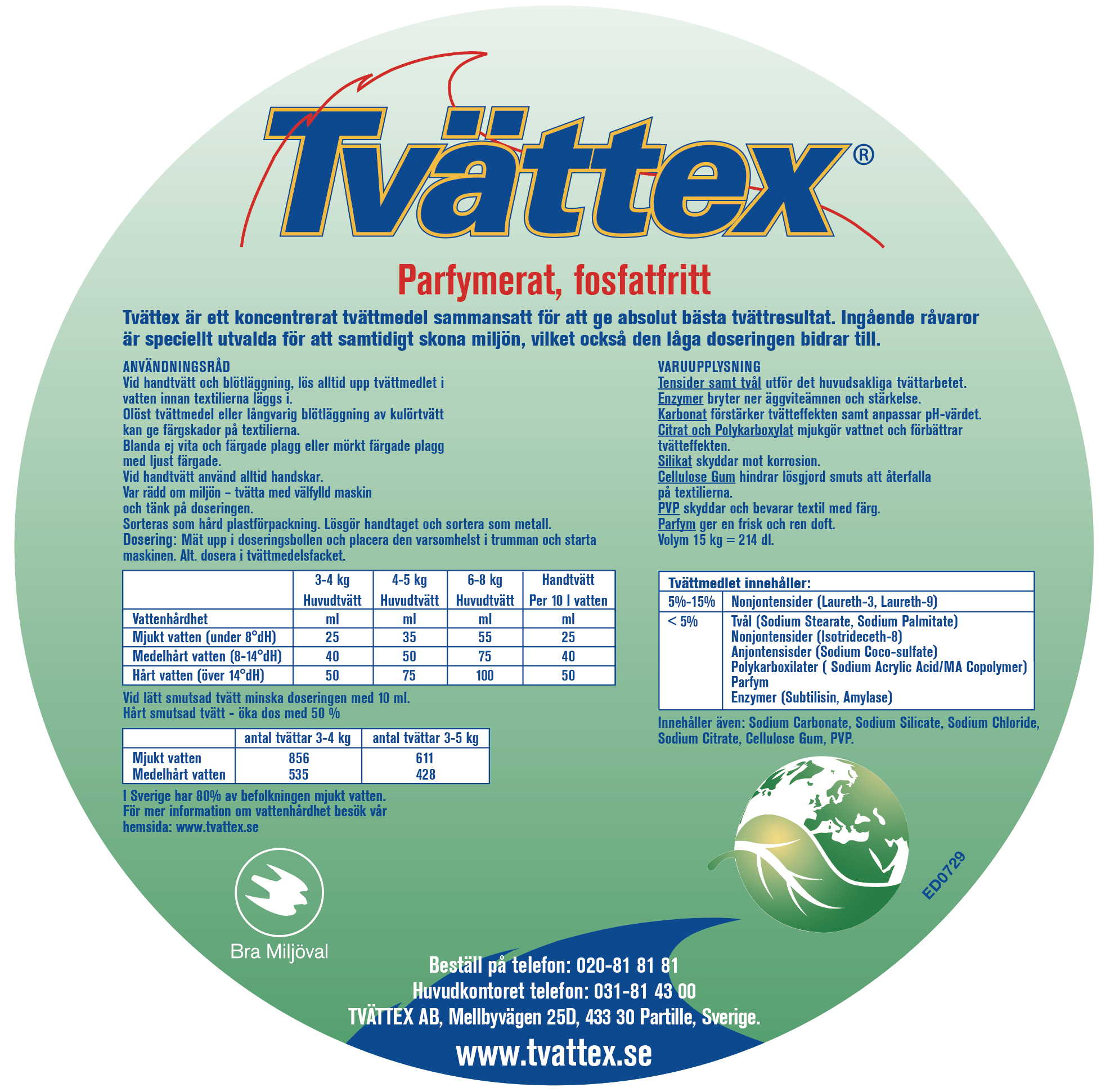 | Räcker till | ca 856 tvättar |